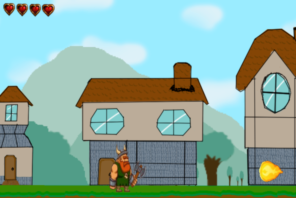 Choix du Personnage et Animation avec un Sprite-Sheet : J’ai sélectionné un personnage pour mon jeu, dans mon cas un viking. Pour animer ce personnage, j’ai utilisé un sprite-sheet, qui est une image contenant plusieurs images individuelles représentant différentes étapes de l’animation (comme la marche, le saut, etc.). En utilisant JavaScript, j’ai affiché les différentes images du sprite-sheet en boucle pour créer une animation fluide du personnage.